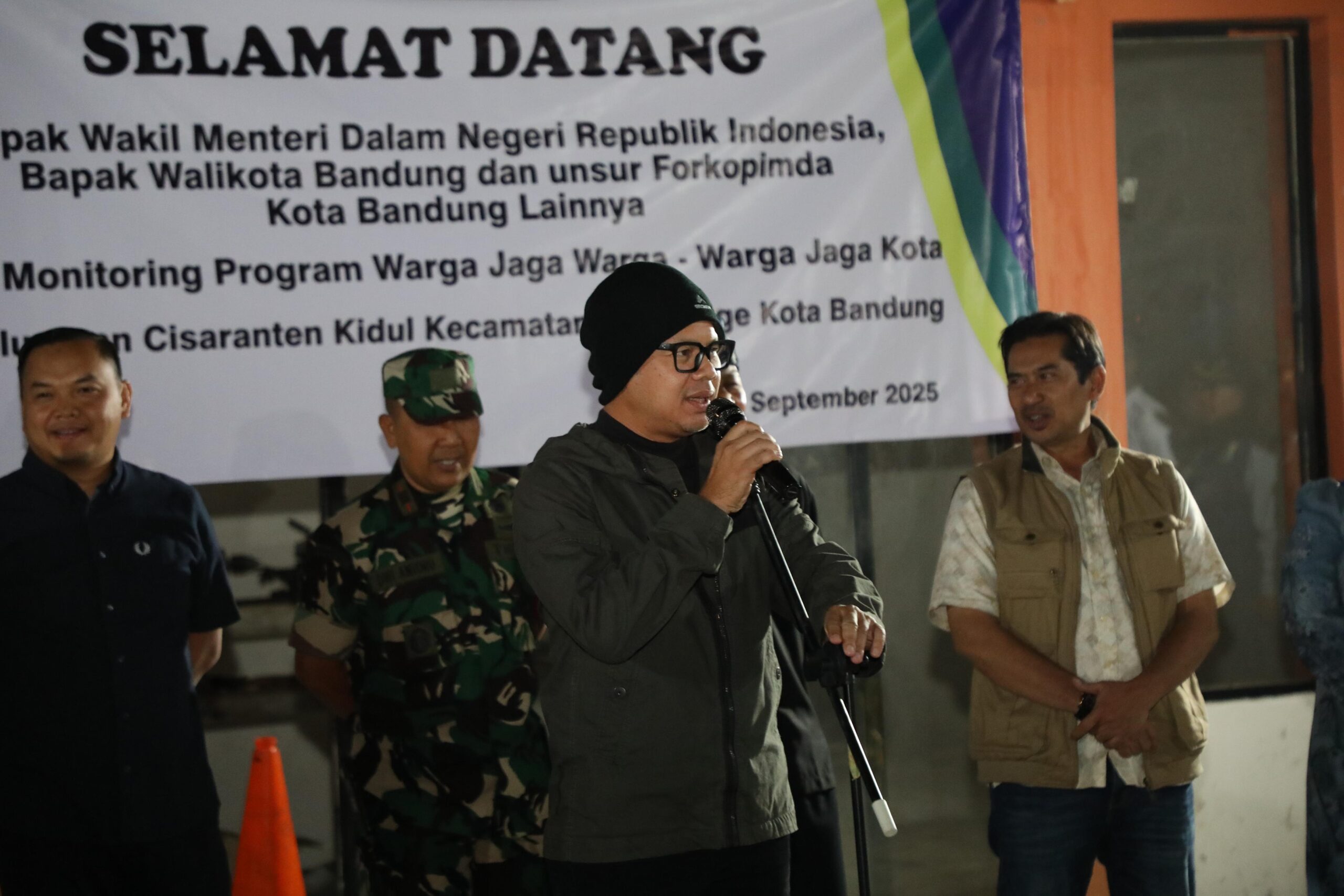 GERBANGPATRIOT.COM, Bandung – Wakil Menteri Dalam Negeri (Wamendagri) Bima Arya Sugiarto meninjau langsung pengaktifan Sistem Keamanan Lingkungan (Siskamling) di Kota Bandung, Jawa Barat, Senin (8/9/2025) malam. Dengan mengenakan kupluk dan setelan kasual hangat layaknya petugas jaga malam, Bima ikut “ronda” bersama Wali Kota Bandung Muhammad Farhan, jajaran Forum Koordinasi Pimpinan Daerah (Forkopimda), serta masyarakat setempat.