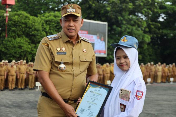 GERBANGPATRIOT.COM, Kota Bekasi – Apel pagi Pemerintah Kota Bekasi hari ini menjadi momen penuh kebanggaan. Wali Kota Bekasi, Tri Adhianto, memberikan apresiasi setinggi-tingginya kepada putra-putri terbaik Kota Bekasi yang berhasil menorehkan prestasi di tingkat nasional hingga internasional, sekaligus menyerahkan penghargaan kepada perangkat daerah yang meraih predikat pelayanan prima.
