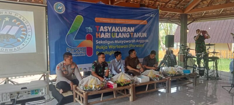 GERBANGPATRIOT.COM, Pandeglang – Kelompok Kerja Wartawan Pandeglang atau Porwan merayakan Hari Ulang Tahun (HUT) ke-4 dengan menggelar acara tasyakuran secara khidmat di Agro Wisata Bukit Sinyonya, Desa Bandung, Kecamatan Banjar, Kabupaten Pandeglang, pada Rabu (30/9/2025).