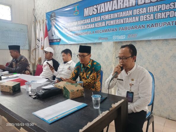 GERBANGPATRIOT.COM, Sindangheula – Pemerintah Desa Sindangheula bersama Badan Permusyawaratan Desa (BPD) menggelar Musyawarah Desa Khusus (Musdesus) dalam rangka penetapan Rencana Kerja Pemerintah Desa (RKPDes) Perubahan Tahun 2025 serta RKPDes Tahun 2026. Kegiatan tersebut berlangsung di Aula Kantor Desa Sindangheula pada Jumat (3/10/2025).