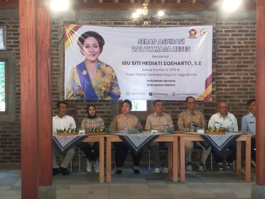GERBANGPATRIOT.COM, Bantul – Ibu Siti Hediati Soeharto, SE, atau Titiek Soeharto, menggelar kegiatan serap aspirasi masa reses di Sanggar Budaya Sumur Tembogo, Dlingo, Selasa (7/10/2025).