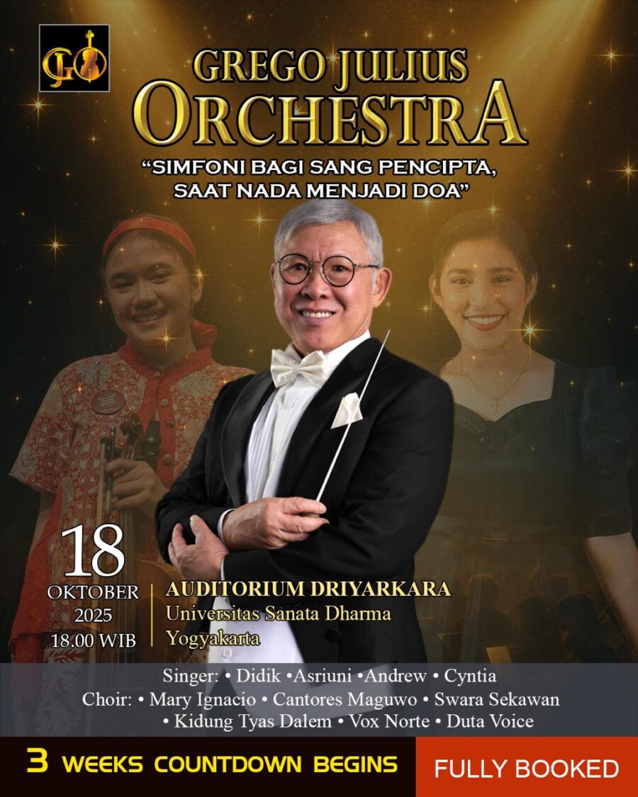 Semangat inilah yang dihadirkan dalam konser rohani bertajuk “Simfoni Bagi Sang Pencipta, Saat Nada Menjadi Doa”, yang akan digelar Sabtu, 18 Oktober 2025, pukul 18.00 WIB di Auditorium Driyarkara, Universitas Sanata Dharma Yogyakarta.