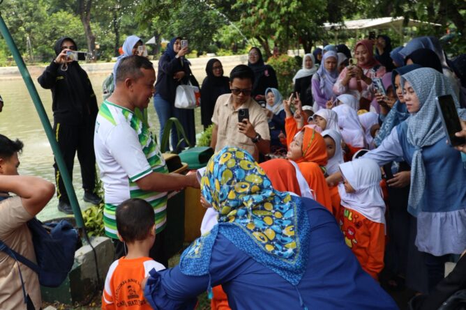 Wali Kota Tri Adhianto turut berinteraksi dengan para peserta anak anak TK, menyapa mereka satu per satu dan membagikan cokelat sebagai bentuk apresiasi atas semangat belajar mereka.
