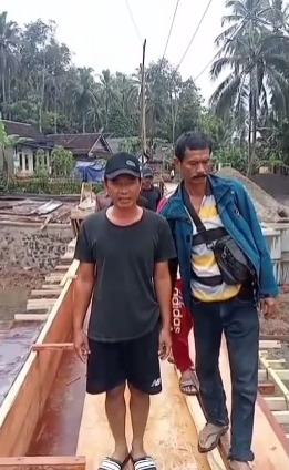 “Untuk sementara, jembatan diberi papan agar anak-anak sekolah tidak perlu menyeberangi sungai. Langkah ini diambil sambil menunggu proses pengecoran selesai,” ujar Hj. Encun Sunayah.