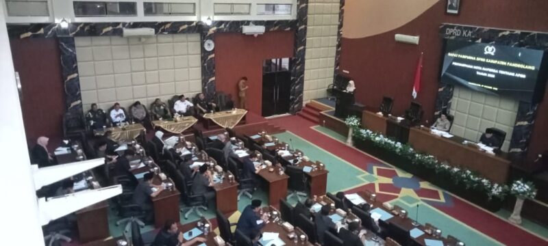 Rapat paripurna tersebut dipimpin langsung oleh Ketua DPRD Kabupaten Pandeglang, didampingi para wakil ketua, serta dihadiri oleh Bupati Pandeglang, Wakil Bupati, unsur Forkopimda, Sekretaris Daerah, para kepala OPD, dan anggota dewan.