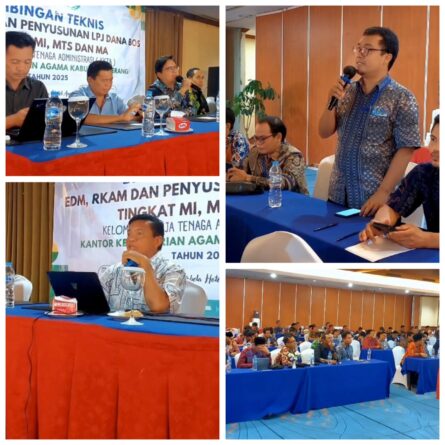GERBANGPATRIOT.COM, Serang – Upaya meningkatkan profesionalisme tenaga administrasi madrasah terus dilakukan Kementerian Agama (Kemenag) Kabupaten Serang. Melalui Seksi Pendidikan Madrasah (Penma) dan Forum Kelompok Kerja Tenaga Administrasi (KKTA) Madrasah, Kemenag menggelar Bimbingan Teknis (Bimtek) Evaluasi Diri Madrasah (EDM), e-RKAM, dan Penyusunan LPJ Dana BOS bagi madrasah jenjang MI, MTs, dan MA se-Kabupaten Serang Tahun 2025.