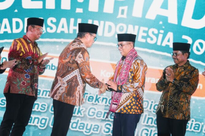 “Madrasah hari ini tidak hanya mempelajari fikih, tarikh Islam, atau tauhid, tetapi juga teknologi. Karena teknologi merupakan bagian dari ajaran Islam, sama halnya dengan pertanian, kedokteran, astronomi, dan sebagainya,” ujar Wamenag Romo Syafi’i. (nr)