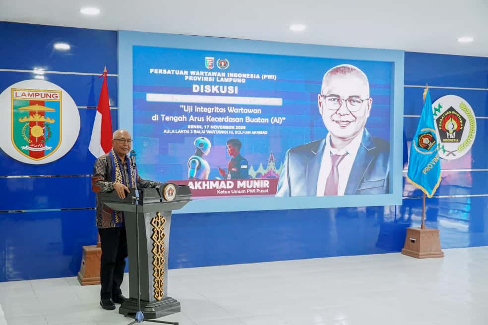 GERBANGPATRIOT.COM, Bandar Lampung – Gubernur Lampung, Rahmat Mirzani Djausal membuka Pekan Pendidikan Wartawan Lampung yang digelar di Aula Lantai 3 Balai Wartawan H. Solfian Akhmad, Kantor PWI Lampung, Senin (17/11/2025). Kegiatan ini diawali dengan diskusi bertema “Uji Integritas Wartawan di Tengah Arus Kecerdasan Buatan (AI)”.