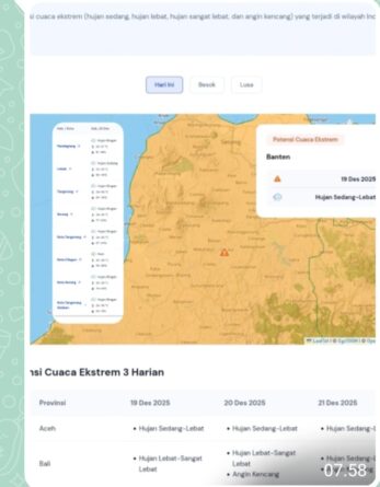 GERBANGPATRIOT.COM, Serang – Polda Banten kembali mengimbau masyarakat untuk meningkatkan kewaspadaan terhadap potensi cuaca ekstrem berdasarkan pembaruan informasi dari Badan Meteorologi, Klimatologi, dan Geofisika (BMKG) Banten per Sabtu, 20 Desember 2025.