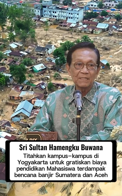 Merespons krisis, Gubernur DIY Sri Sultan HB X “turun gunung”. “Jangan ada mahasiswa putus kuliah,” titahnya, meminta kampus segera mendata korban terdampak banjir besar nasional.
