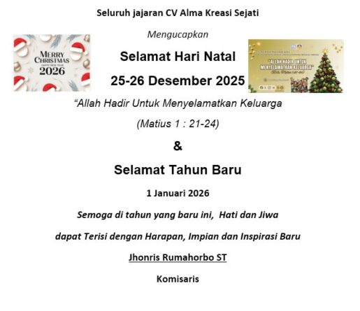 Iklan Seluruh jajaran CV Alma Kreasi Sejati Mengucapkan Selamat Hari Natal dan Tahun Baru 2026 25 Desember 2025 | 01:50 WIB Admin