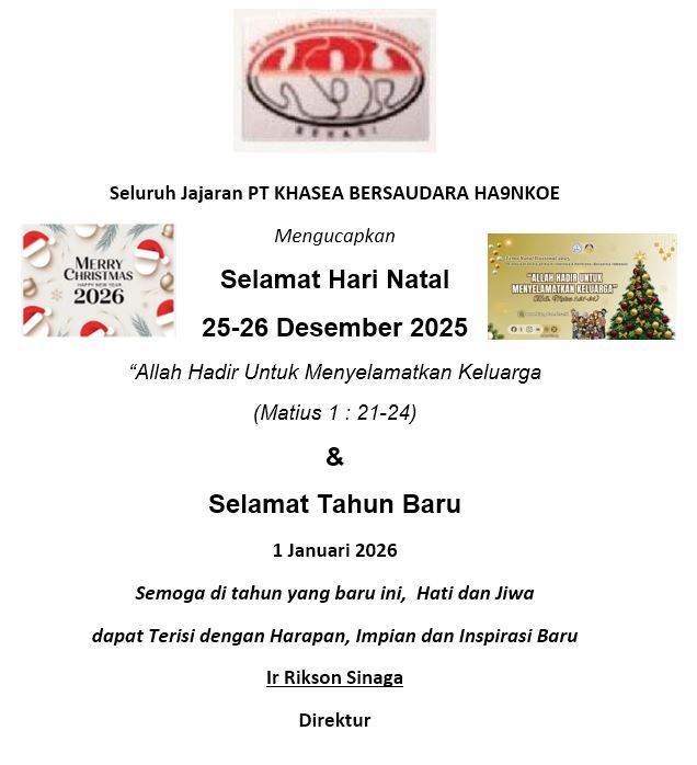 Iklan Seluruh Jajaran PT KHASEA BERSAUDARA HA9NKOE Mengucapkan Selamat Hari Natal dan Tahun Baru 2026 25 Desember 2025 | 01:49 WIB Admin