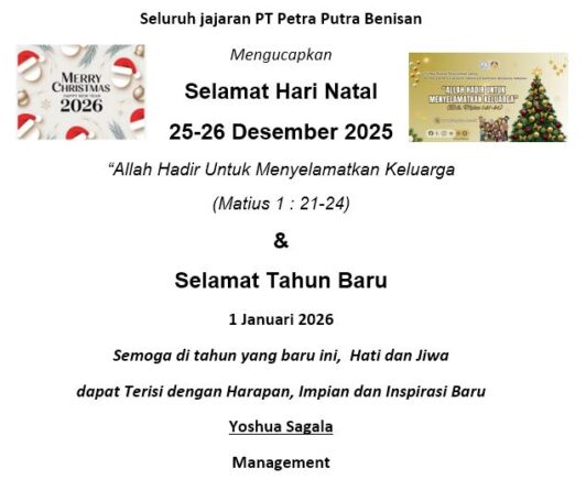 Iklan Seluruh jajaran PT Petra Putra Benisan Mengucapkan Selamat Hari Natal dan Tahun Baru 2026 25 Desember 2025 | 01:51 WIB Admin