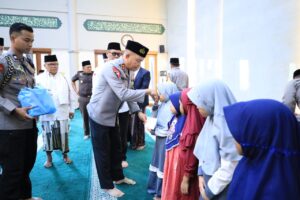 Diakhir Kegiatan istighosah dan doa bersama Kapolda Banten Irjen Pol Hengki memberikan santunan kepada 100 anak yatim piatu sebagai wujud kepedulian Polda Banten. (Ls)