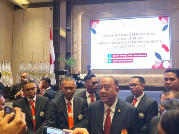 GERBANGPATRIOT.COM, Makassar – Ketua Umum Komite Olahraga Nasional Indonesia (KONI) Pusat, Marciano Norman, melantik Pengurus Besar Persatuan Sepak Takraw Indonesia (PB PSTI) periode 2025–2029 di Claro Hotel Makassar,