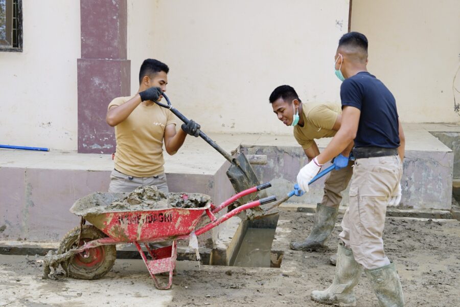 Menurut Ronny, tantangan terberat berada di laboratorium kesehatan milik Dinkes. Pasalnya, posisi laboratorium yang lebih rendah dibandingkan bangunan di sekitarnya menyebabkan genangan dan endapan lumpur lebih tebal. Lumpur di dalam laboratorium sempat setinggi lutut orang dewasa. Selain itu, praja juga harus berhati-hati karena terdapat bahan kimia di area tersebut.