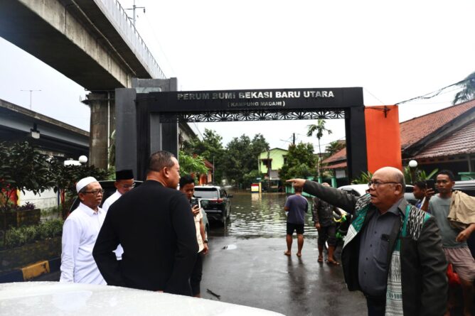 GERBANGPATRIOT.COM, Kota Bekasi – Wali Kota Bekasi, Tri Adhianto turun langsung ke lokasi banjir yang kerap melanda Perumahan Bumi Bekasi Baru Utara, Kelurahan Sepanjang Jaya, Kecamatan Rawalumbu. Peninjauan dilakukan untuk memastikan titik penyebab banjir sekaligus mencari solusi penanganan yang cepat dan tepat.