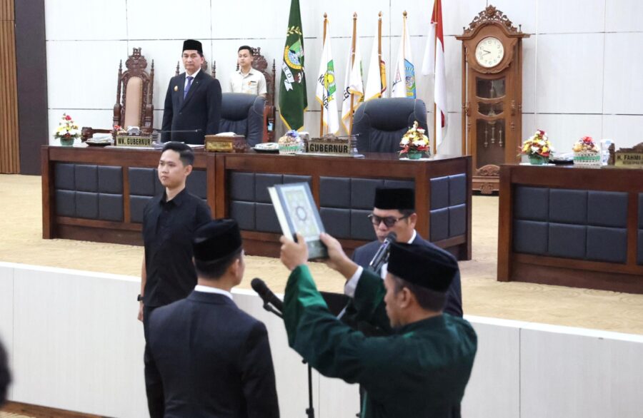 Prosesi pengucapan sumpah janji dipimpin langsung oleh Ketua DPRD Provinsi Banten, Fahmi Hakim, yang dilanjutkan dengan penandatanganan berita acara pelantikan serta penyematan pin kepada Riyan Hidayat. (nr)
