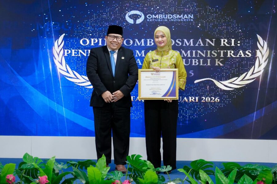 Penghargaan itu diterima langsung oleh Wakil Gubernur Lampung Jihan Nurlela pada acara Opini Ombudsman RI: Penilaian Maladministrasi Pelayanan Publik Tahun 2025 di Aula Lantai 1 Gedung Ombudsman RI, Jakarta, Kamis (29/1/2026).