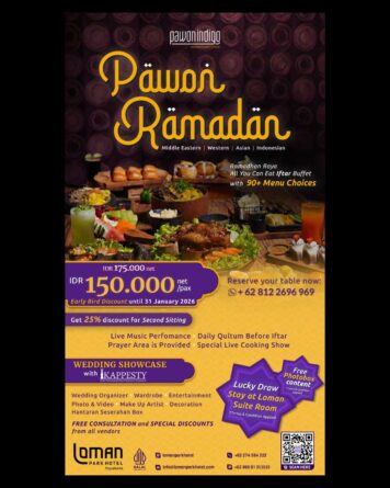 GERBANGPATRIOT.COM, YOGYAKARTA – Menyambut bulan suci Ramadan yang akan datang, Loman Park Hotel Yogyakarta menghadirkan program bertajuk “Pawon Ramadan” yang menggabungkan tradisi kuliner, perencanaan pernikahan, dan pengalaman spiritual. Hotel beraroma arsitektur Jawa ini bekerja sama dengan Ikappesty (Ikatan Perancang Pesta Tradisional Yogyakarta) untuk menyajikan Wedding Showcase di tengah suasana berbuka puasa yang hangat.