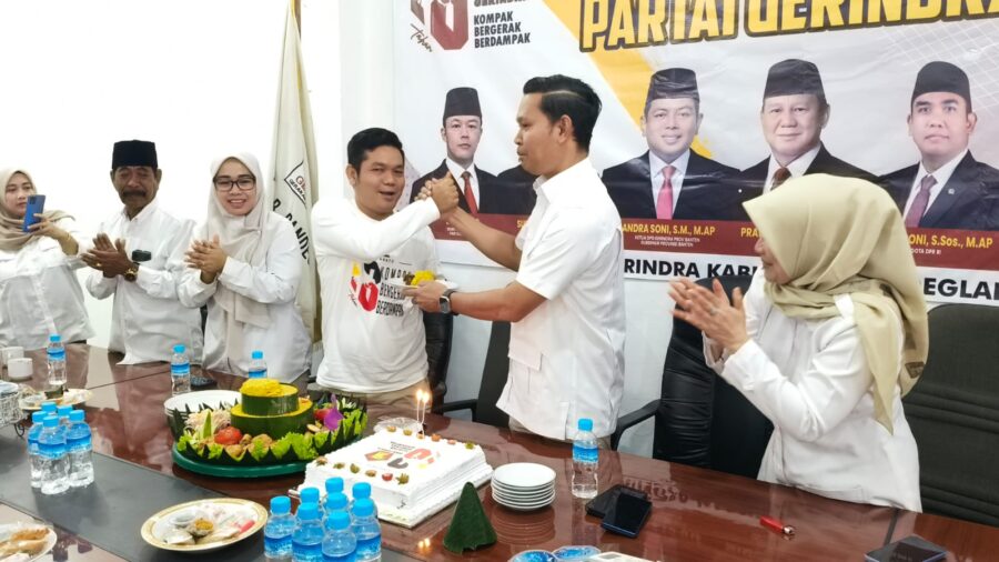 GERBANGPATRIOT.COM, Pandeglang – Dalam rangka menyambut Hari Ulang Tahun ( HUT) Partai Gerindra ke-18, Dewan Pimpinan Cabang (DPC) Partai Gerindra Pandeglang menggelar Tasyakuran dan santunan anak yatim bertempat di sekretariat DPC Gerindra, Sabtu (7/02/2026).