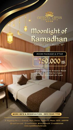 GERBANGPATRIOT.COM, YOGYAKARTA — Menyambut suasana bulan suci Ramadhan 2026, Crystal Lotus Hotel Yogyakarta tak hanya menghadirkan program berbuka puasa, tetapi juga menawarkan pengalaman menginap spesial melalui room package bertajuk Moonlight of Ramadhan.