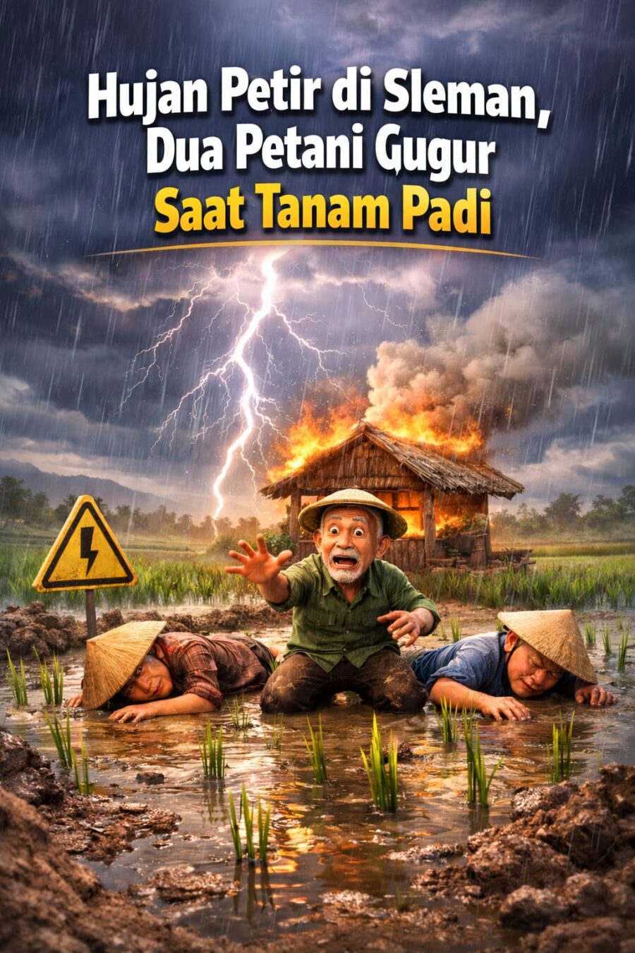 GERBANGPATRIOT.COM, Sleman – Hujan deras disertai kilat mendadak berubah menjadi petaka di persawahan Dusun Barak, Margoluwih, Seyegan, Sleman. Dua petani lanjut usia meninggal dunia setelah tersambar petir, Senin (9/2/2026) siang. Peristiwa ini kembali menegaskan rapuhnya keselamatan pekerja sektor pertanian di ruang terbuka.