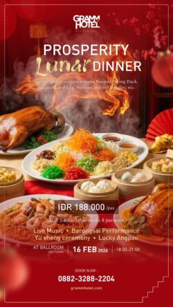 Dengan harga IDR 188.000 nett per orang atau paket keluarga IDR 1.400.000 untuk maksimal 8 orang, Prosperity Lunar Dinner di GRAMM Hotel by Ambarrukmo menawarkan pengalaman bersantap Imlek yang lengkap, hangat, dan berkesan.