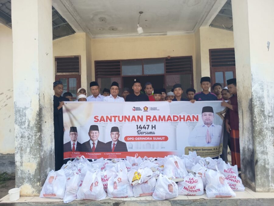 GERBANGPATRIOT.COM, Medan – Dewan Pimpinan Daerah (DPD) Partai Gerindra Sumatera Utara menunjukkan kepedulian sosialnya di bulan suci Ramadan dengan menyalurkan bantuan ke sejumlah panti asuhan yang tersebar di wilayah Medan, Binjai, dan Langkat. Penyerahan bantuan ini dipimpin langsung oleh Sekretaris DPD Gerindra Sumut, Sugiat Santoso.