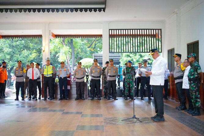 GERBANGPATRIOT.COM, Kota Bekasi – Pemerintah Kota Bekasi bersama unsur Tiga Pilar menggelar apel gabungan gelar pasukan dalam rangka kesiapan pengamanan arus mudik Hari Raya Idulfitri 2026. Kegiatan tersebut dilaksanakan di Pendopo Wali Kota Bekasi, Kamis (12/3).