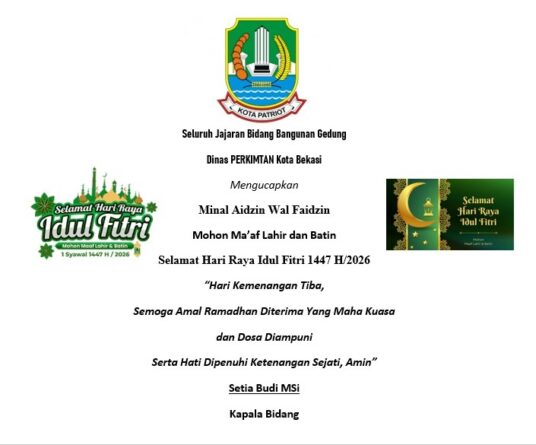 BEKASI Iklan Seluruh Jajaran Bidang Bangunan Gedung Dinas PERKIMTAN Kota Bekasi Mengucapkan Selamat Hari Raya Idul Fitri 1447 H/2026 17 Maret 2026 | 21:58 WIB18 Maret 2026 | 08:01 WIB admin