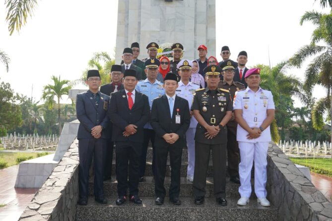 Sekdaprov memimpin langsung ziarah rombongan yang diawali dengan peletakan karangan bunga di tugu makam pahlawan sebagai bentuk penghormatan dan dilanjutkan dengan tabur bunga di pusara para pahlawan.