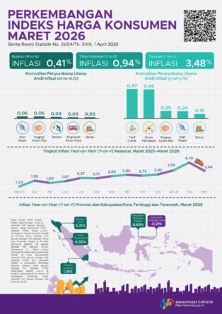 GERBANGPATRIOT.COM, Bandar Lampung — Perkembangan Indeks Harga Konsumen (IHK) pada Maret 2026 menunjukkan tren inflasi yang tetap terkendali, baik di tingkat nasional maupun daerah. Data resmi yang dirilis Badan Pusat Statistik mencatat inflasi bulanan (month-to-month) sebesar 0,41 persen, inflasi tahun kalender (year-to-date) sebesar 0,94 persen, dan inflasi tahunan (year-on-year) sebesar 3,48 persen.