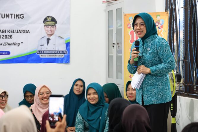 GERBANGPATRIOT.COM, Pandeglang – Ketua Tim Penggerak Pemberdayaan Kesejahteraan Keluarga (TP PKK) sekaligus Pembina Posyandu Provinsi Banten Tinawati Andra Soni menyerahkan program Pemberian Makanan Tambahan (PMT) untuk ibu hamil, menyusui, dan balita. Program untuk mencegah stunting ini juga dibarengi pelatihan bergizi berbahan pangan lokal.