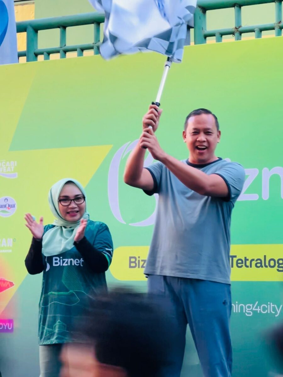 Kegiatan fun run ini turut dihadiri oleh Wali Kota Bekasi, Tri Adhianto bersama istri, Wiwiek Hargono Tri Adhianto.