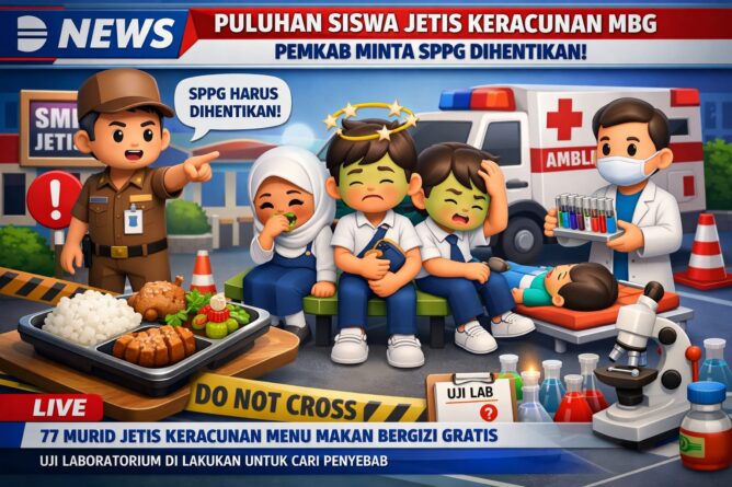 GERBANGPATRIOT.COM, Bantul – Puluhan siswa di Kapanewon Jetis, Kabupaten Bantul, mengalami gejala keracunan usai menyantap menu Makan Bergizi Gratis (MBG), Senin (13/4/2026).