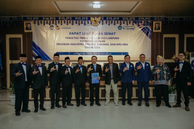 Hal tersebut disampaikan Sekdaprov Marindo saat menghadiri Rapat Luar Biasa Senat Fakultas Teknik Universitas Lampung dalam rangka Yudisium Program Magister, Profesi, Sarjana, dan Diploma Tahun 2026, di Aula Gedung A Lantai 2 Fakultas Teknik Universitas Lampung, Kamis (23/4/2026).
