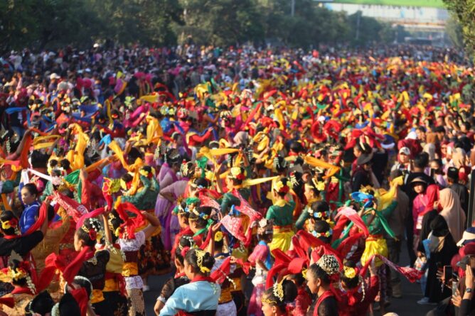 Antusiasme warga terlihat begitu tinggi. Kawasan CFD berubah menjadi lautan manusia yang larut dalam irama tari, menciptakan suasana yang semarak sekaligus membanggakan.