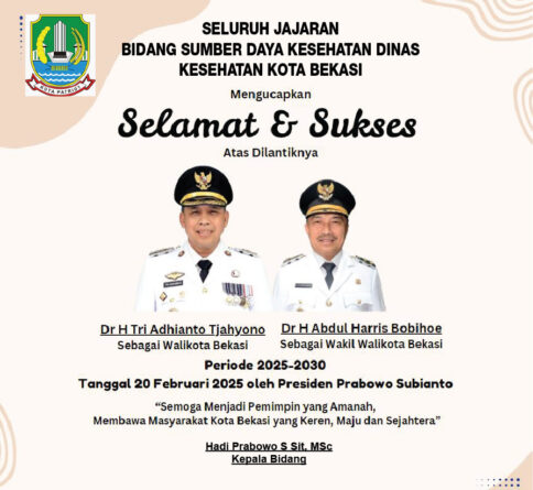 Iklan Seluruh Jajaran Bidang Sumber Daya Kesehatan Dinas Kesehatan Kota Bekasi Mengucapkan Selamat dan Sukses Atas Dilantiknya Dr H Tri Adhianto Tjahyono Sebagai Walikota Bekasi & Dr H Abdul Harris Bobihoe Sebagai Wakil Walikota Bekasi Periode 2025-2030 21 Februari 2025 | 00:16 WIB Admin Baca Selengkapnya
