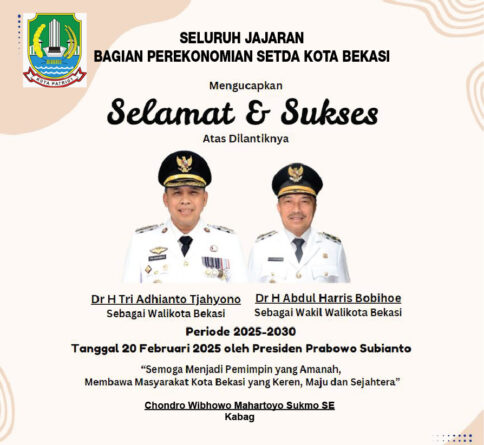 Iklan Seluruh Jajaran Bagian Perekonomian SETDA Kota Bekasi Mengucapkan Selamat dan Sukses Atas Dilantiknya Dr H Tri Adhianto Tjahyono Sebagai Walikota Bekasi & Dr H Abdul Harris Bobihoe Sebagai Wakil Walikota Bekasi Periode 2025-2030 21 Februari 2025 | 00:16 WIB21 Februari 2025 | 00:17 WIB Admin Baca Selengkapnya