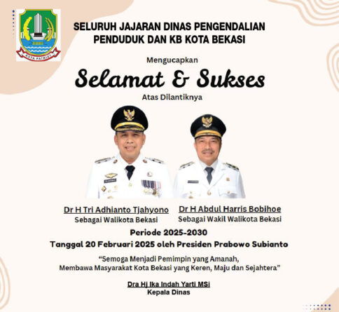 Iklan Seluruh Jajaran Dinas Pengendalian Penduduk dan KB Kota Bekasi Mengucapkan Selamat dan Sukses Atas Dilantiknya Dr H Tri Adhianto Tjahyono Sebagai Walikota Bekasi & Dr H Abdul Harris Bobihoe Sebagai Wakil Walikota Bekasi Periode 2025-2030 21 Februari 2025 | 00:17 WIB21 Februari 2025 | 15:52 WIB Admin Baca Selengkapnya