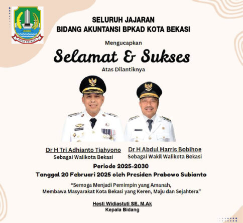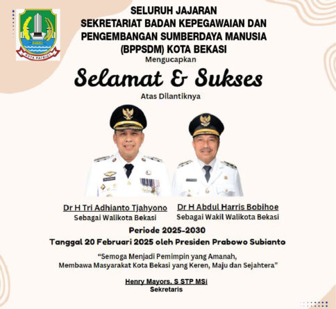 Iklan Seluruh Jajaran Sekretariat Badan Kepegawaian dan Pengembangan Sumber Daya Manusia (BPPSDM) Kota Bekasi Mengucapkan Selamat dan Sukses Atas Dilantiknya Dr H Tri Adhianto Tjahyono Sebagai Walikota Bekasi & Dr H Abdul Harris Bobihoe Sebagai Wakil Walikota Bekasi 21 Februari 2025 | 00:20 WIB Admin Baca Selengkapnya