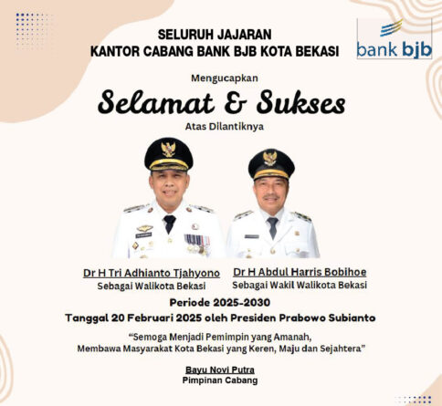 Iklan Seluruh Jajaran Kantor Cabang Bank BJB Kota Bekasi Mengucapkan Selamat dan Sukses Atas Dilantiknya Dr H Tri Adhianto Tjahyono Sebagai Walikota Bekasi & Dr H Abdul Harris Bobihoe Sebagai Wakil Walikota Bekasi Periode 2025-2030 21 Februari 2025 | 00:19 WIB Admin Baca Selengkapnya