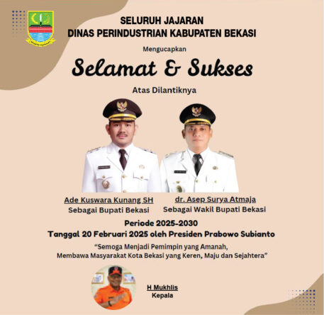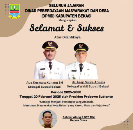 Iklan Seluruh Jajaran Dinas Peberdayaan Masyarakat dan Desa (DPMD) Kabupaten Bekasi Mengucapkan Selamat dan Sukses Atas Dilantiknya Ade Kuswara Kunang SH Sebagai Bupati Bekasi dan dr. Asep Surya Atmaja Sebagai Wakil Bupati Bekasi Periode 2025-2030 20 Februari 2025 | 19:11 WIB26 Februari 2025 | 19:11 WIB Admin Baca Selengkapnya
