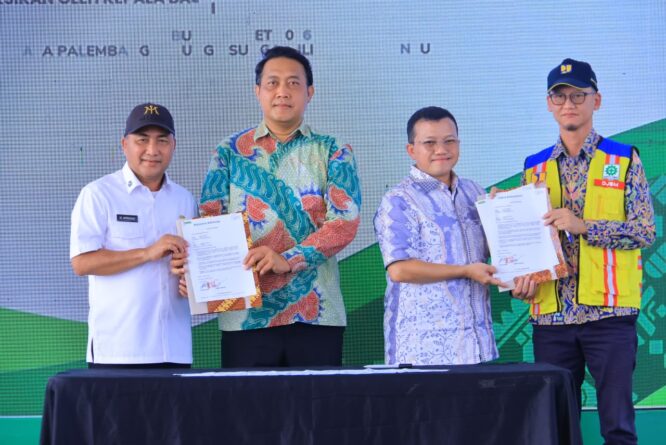GERBANGPATRIOT.COM, Musi Banyuasin – Gubernur Sumatera Selatan (Sumsel) Dr. H. Herman Deru melakukan ground breaking pembangunan fly over sekaligus meresmikan